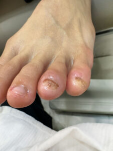 現在爪や皮膚に重度の疾患や炎症がある方(化膿した巻き爪、爪周囲の深い傷、重度の爪真菌症など)。まずは皮膚科での治療が必要なケースでは、状態が落ち着いてからサロンケアを提供いたします。